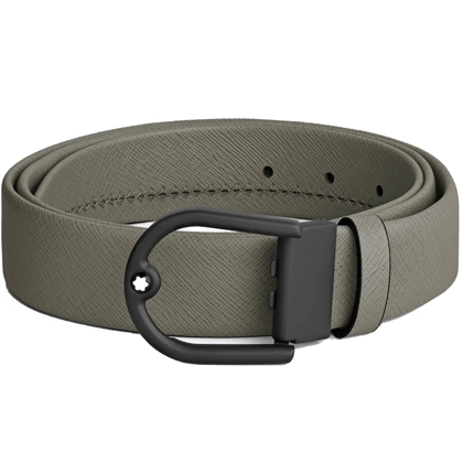 Кожаный ремень 35 мм из кожи серого цвета, пряжка в форме подковы от магазина премиальных ручек Premium Pens в Дербенте.